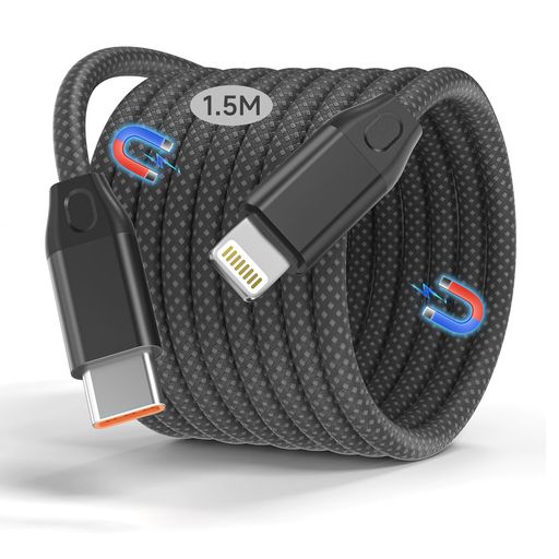 マグネット充電ケーブル USB-C LIGHTNINケーブル 磁気自動収納 FOR IPHONE充電 ライトニンケーブル 9V/3A 急速充電【1.5M】PD対応 同期データ転送 磁気 ナイロン製 巻きつき防止 防断線 LIGHTNINケー…