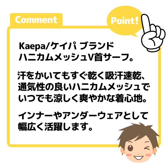 【送料無料】紳士 メンズ 吸汗速乾 半袖 V首 サーフ シャツ インナー Kaepa/ケイパ ハニカムメッシュ 通気性 軽量 アンダーウェア 肌着 下着 M L LL yg-2866【メール便対応】