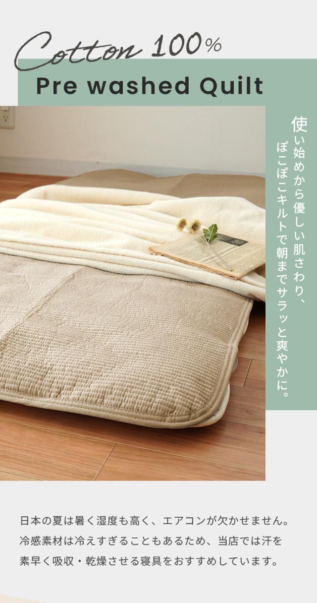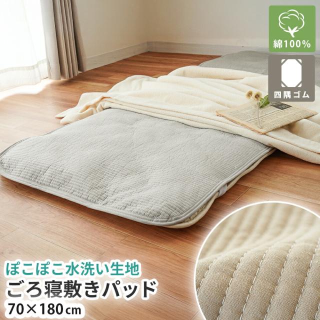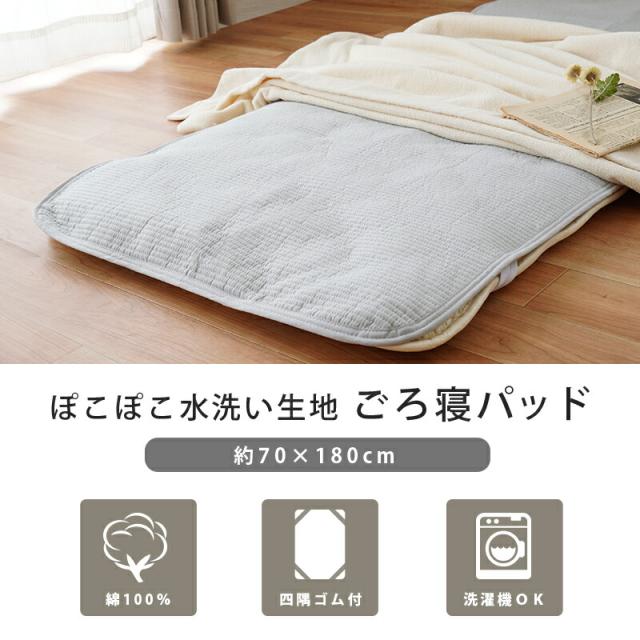 ごろ寝 敷きパッド 70×180 綿100% 夏用 キルティング ぽこぽこ水洗い生地 吸水 速乾 洗える ベッドパッド 春夏用 四隅ゴム【haru】