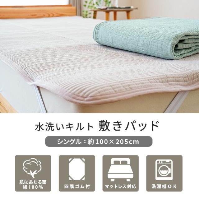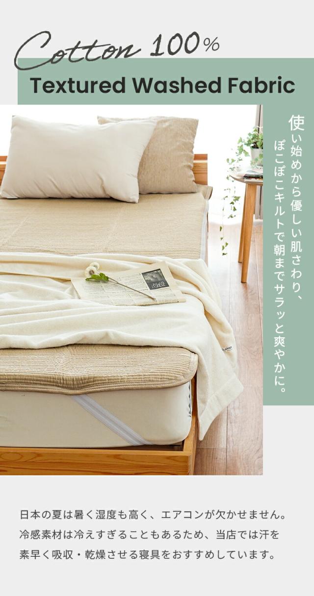 敷きパッド 綿100% シングル ぽこぽこ 水洗い生地 夏用 吸水 速乾 洗える 春夏用 オールシーズン ベッドパッド 四隅ゴム