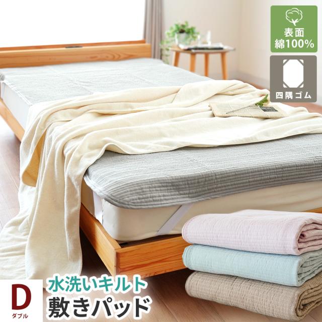敷きパッド 綿100% ダブル ぽこぽこ 水洗い生地 夏用 吸水 速乾 洗える 春夏用 オールシーズン ベッドパッド 四隅ゴム