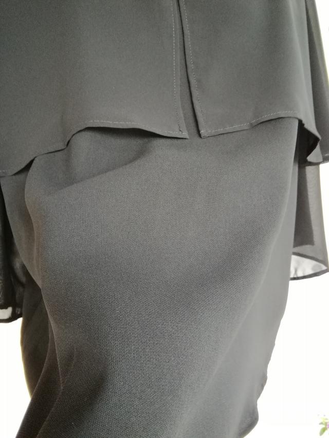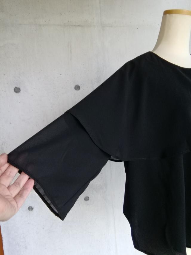 袖とケープ分はシフォンで軽やか。ベースはオールシーズン用の透け感の無いブラックフォーマル用の生地を使用しました。