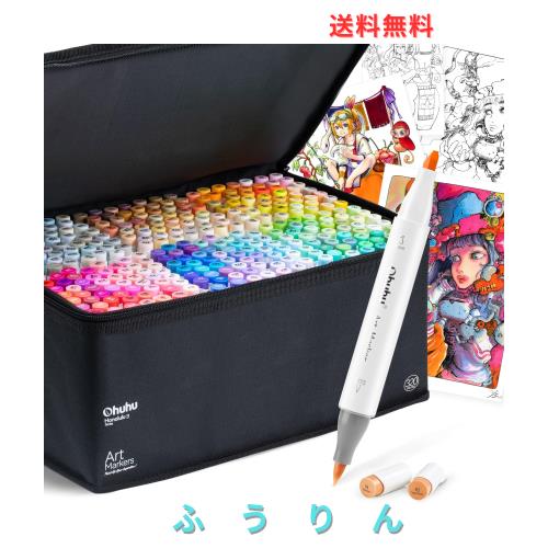 Ohuhu マーカーペン 筆タイプ 320色 プロ愛用 イラスト イラストマーカー 筆・太字 ブレンダーペン1本付き Honolulu シリーズ