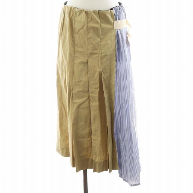 【中古】カピス Capis フレアスカート ロング丈 ストライプ 切替 2 ベージュ 水色 ライトブルー ■GY41