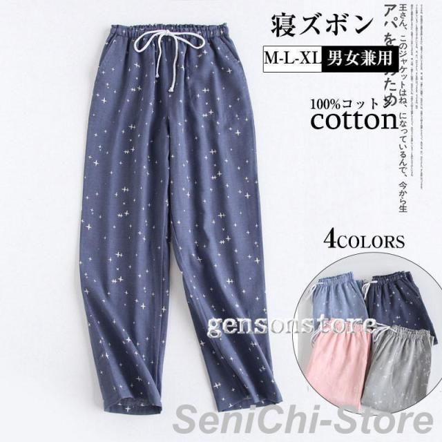 ルームパンツ 綿100% ロング丈 寝ズボン パジャマ 春夏 ルームウェア メンズ レディース 夫婦 カップル 長ズボン コットン 薄手 快適 部屋着 リラックス 男女