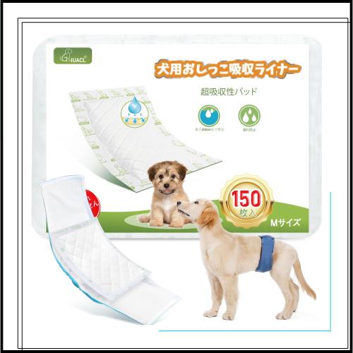 マナーパッド マナーベルト 犬 男の子 超吸収です 犬 おむつライナー ペット用おしっこ吸収シート、150枚入、Mサイズ