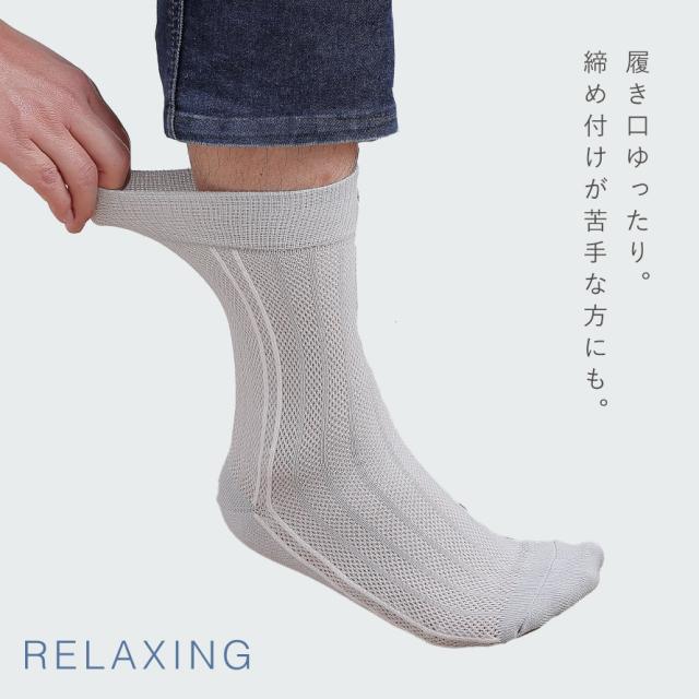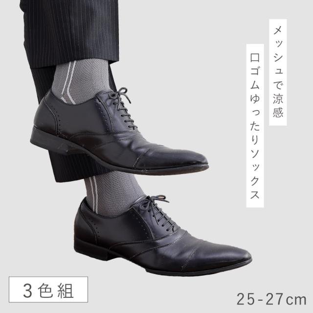 履き口ゆったり 靴下 メンズ ビジネス 夏 3色組 25-27cm 涼しい メッシュ 夏用 口ゴム ゆるい 締め付けない 口ゴムゆったりスパイラルメンズメッシュソックス