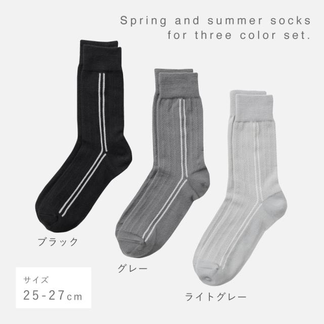 靴下 メンズ ビジネス,靴下 メンズ 夏用,靴下 メンズ メッシュ,靴下,ストライプ,つま先,かかと,補強,丈夫,履き口,ゆったり,口ゴム,くちゴムゆるめ,よく伸びる,足首,ゆるい,ゆるめ,足のむくみ,むくみ,伸びる,動きやすい,履きやすい,締め付けない,しめつけない,締めつけない,締め付け感なし,跡が残らない,跡がつかない,メッシュ,春夏,春,夏,夏用,暑い,季節,さらさら,サラサラ,サラっと,さらっとしている,さらり,サラリ,爽やか,さわやか,蒸れない,ムレない,蒸れにくい,ムレにくい,涼しい,涼しげ,通気性,風通し,風通しが良い,快適,履き心地,履き心地が良い,気持ちいい,3色組,セット,まとめ買い,3足,大人,メンズ,男性,男性用,紳士用,メンズ靴下,25-27cm,25cm,25センチ,26cm,26センチ,27cm,27センチ,ブラック,黒,ライトグレー,グレー,