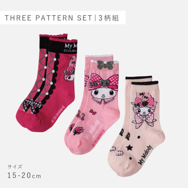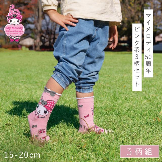 マイメロディ 靴下 子ども キッズ 子供 女の子 15cm 3柄組 15-20cm マイメロ サンリオ マイメロディー 可愛い 名前が書ける マイメロディ50周年アニバーサリーソックス