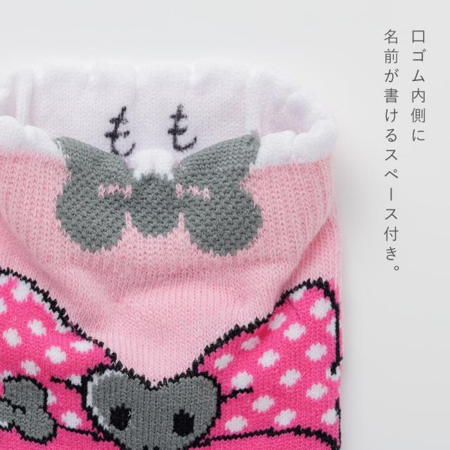 口ゴム内側に名前が書けるスペース付き。園などで持ち物に名前を書く時にも便利です。
