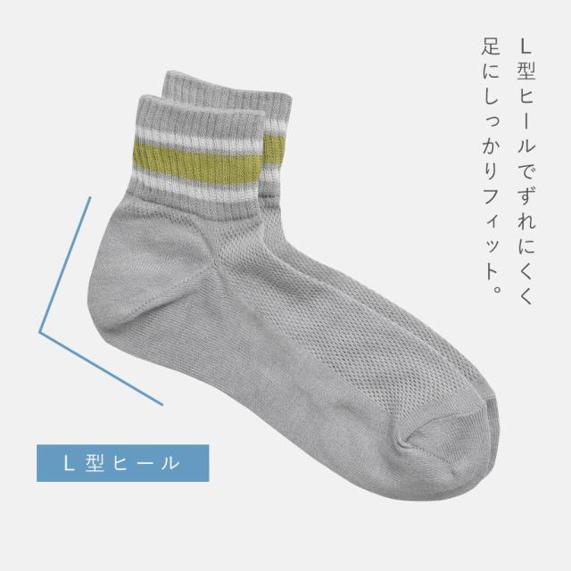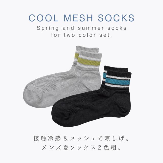 靴下 メンズ 冷感 夏 2色組 25-26cm 涼しい メッシュ 接触冷感 速乾 夏用 ボーダー ずれない ショート 日本製 接触冷感メンズボーダーメッシュL型ヒールソックス