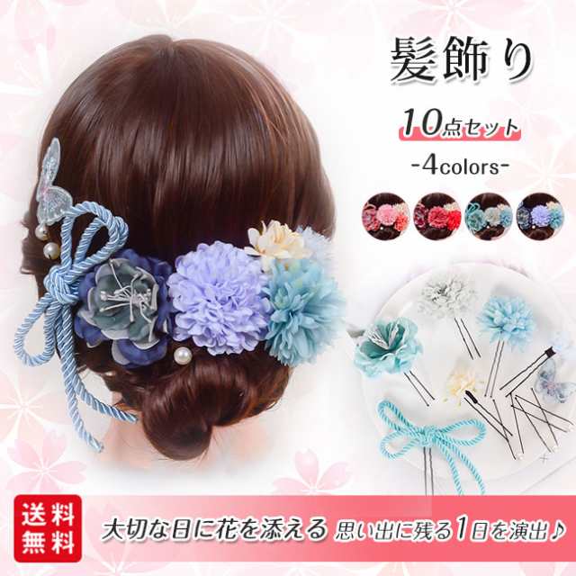 髪飾り 成人式 和装 花 10点セット 髪留め かんざし 和装小物 卒業式 七五三 お祭り 着物 浴衣 和装 結婚式 花嫁 子供 大人 プレゼント ギフト ラッピング