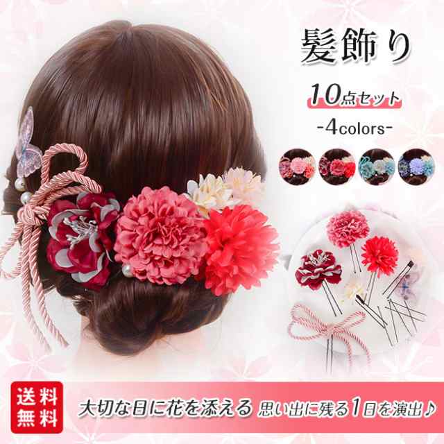 髪飾り 成人式 和装 花 10点セット 髪留め かんざし 和装小物 卒業式 七五三 お祭り 着物 浴衣 和装 結婚式 花嫁 子供 大人 プレゼント ギフト ラッピング