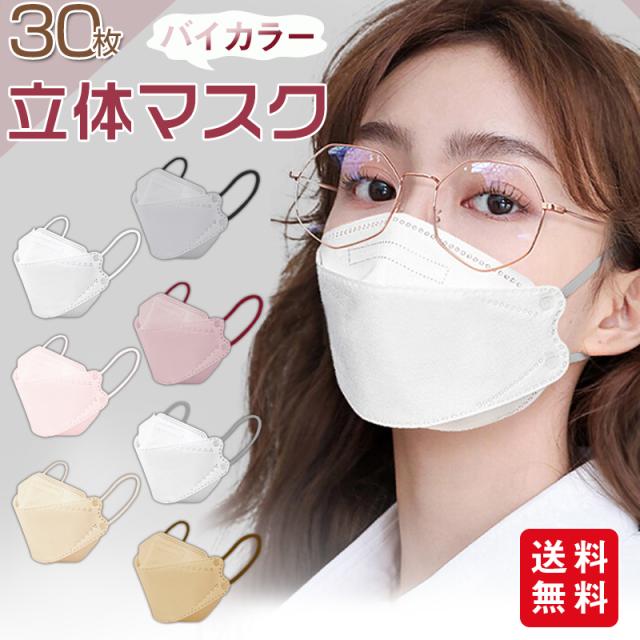 冷感マスク バイカラーマスク 小顔3Dマスク 立体マスク 30枚入 不織布マスク 息がしやすい くすみカラー 小顔 パステルカラー 小さめ 4層 口紅が付きにくいバイカラー ひんやり