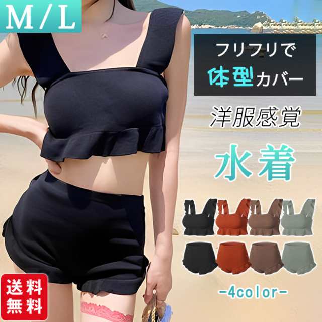 【2点10%OFF】夏新作 水着 タンキニ レディース 体型カバー フリル ママ ラッシュガード 20代 30代 40代 50代 上下セット ビキニ セパレート 可愛い 洋服感覚