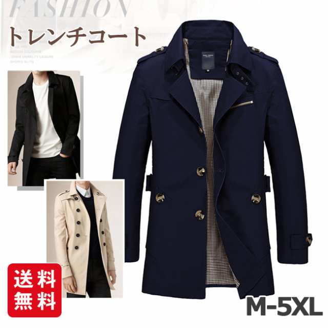 トレンチコート メンズ ジャケット コート アウター 紳士服 ロングコート 立ち襟 防風 ビジネス 通学 通勤 スリム 細身 定番 きれいめ カジュアル 春秋 秋冬 春コート