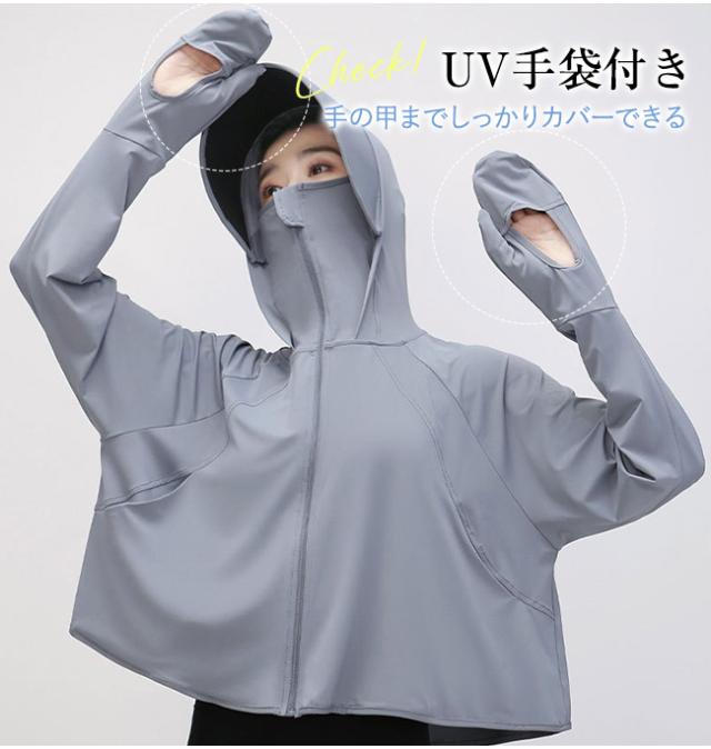 夏新作 ラッシュガード UVカット パーカー レディース 手袋 日焼け対策 長袖 ゆったり 夏 冷感 接触冷感 日焼け防止 吸湿 速乾