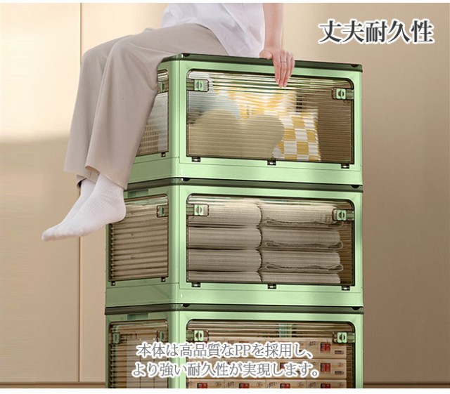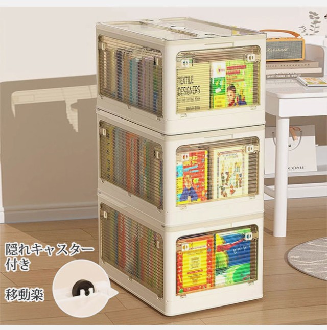 【2点10%OFF】収納ボックス 折りたたみ 5面開閉 3点セット 新生活 コンテナー おしゃれ 隠れキャスター付き 組立簡単 衣装布団 収納ケース 災害用 積み重ね 大容量 物入れ 移動便利 透明 ボックス コンパクト 家庭用 車用 M(40L)