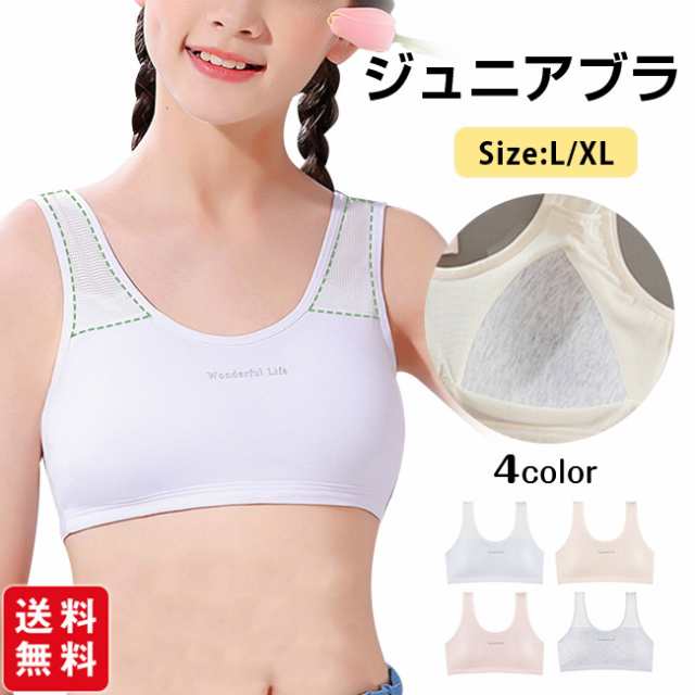 ジュニアブラ ブラジャー スポーツブラ ノンワイヤ 下着 綿 パット付き キッズブラー インナー 青春期 成長期 部活 中学生 子供用 小学生 女の子