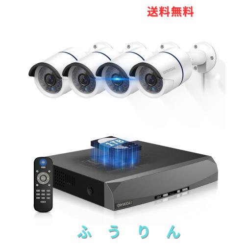 【30メートル超強暗視】POE防犯カメラセット 防犯カメラ 屋外 POE給電 監視カメラ 4台 適格請求書発行可 有線防犯 有線 屋内 屋外防犯カ