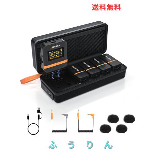 ◆商品名:Comica Vimo Q 送信機4台+受信機1台 黒ワイヤレスピンマイク 200m伝送距離、CalMixオーディオ処理、充電ケース付属 動画撮影 オンライン