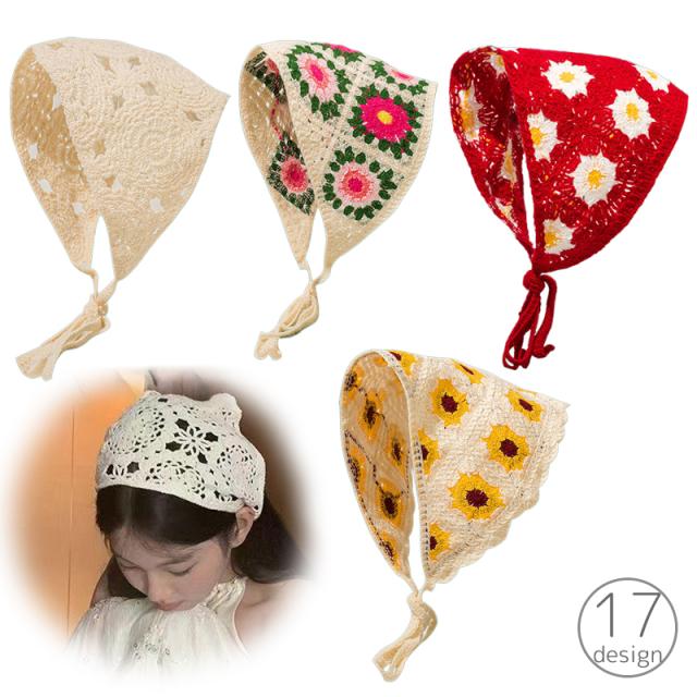 バブーシュカ ヘッドスカーフ バンダナ ニット レディース 女性 ヘアアクセサリー ヘッドドレス 三角 頭巾 紐付き ターバン
