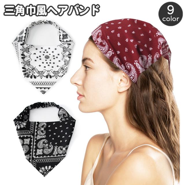ヘアバンド 三角巾 レディース ゴム ヘアターバン バンダナキャップ バンダナ風ヘアバンド ペイズリー柄 おしゃれ かわいい 調