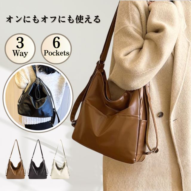 商品名:ショルダーバッグ リュックサック レディース おしゃれ 2WAY ポケット 収納 ブラック レザー 通勤 通学 大容量 軽量 シンプル ファスナー 大きめ
