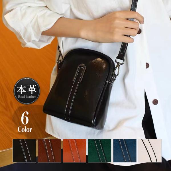 本牛革 スマホポーチ レディース ショルダーバッグ ポシェット おしゃれ シンプル 斜め掛け ポーチ 収納 携帯 レザー ポケット ミニ ブラック 軽量 縦型