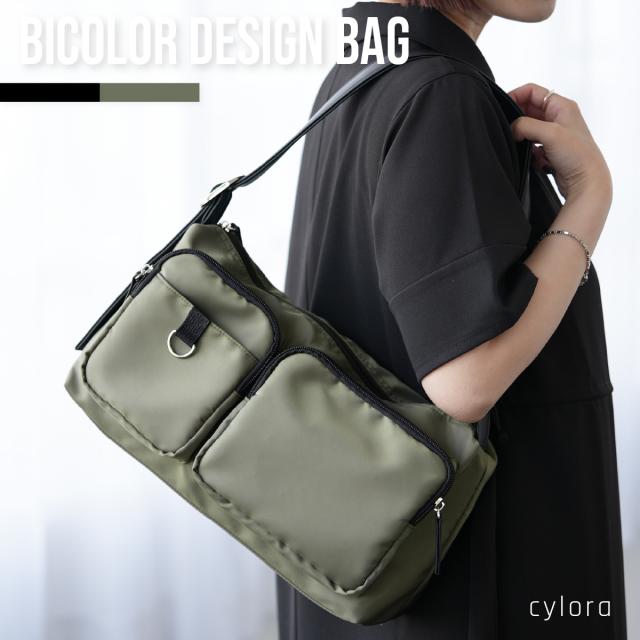 【バイカラーデザインバッグ】 cylora シロラ バッグ ショルダーバッグ デザイン 調節可能 バイカラー 配色 モード ラフ