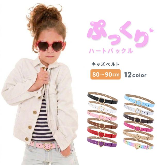 ベルト キッズ 子ども用 子供用 女の子 ファッション雑貨 バックル ハート フェイクレザー ポップ カジュアル かわいい キュ