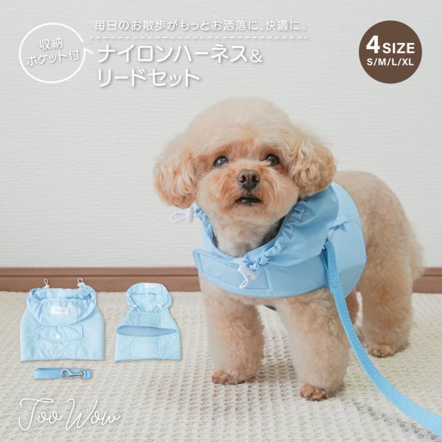 【ナイロンポケットハーネス・リードセット】S M L XL ハーネス リード 2点セット ナイロン 防水 犬服 ポケット ペット