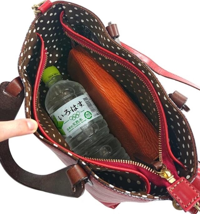 日本製 レザーバッグ 2way ショルダーバッグ ハンドバッグ 中ドット柄 牛革 ハンドメイド カジュアルバッグ レディースバッグ 手提げバッグ 肩掛け 斜めかけ おしゃれ 内側ドット柄 かわいい