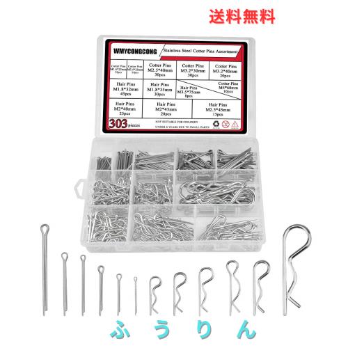 ◆商品名:WMYCONGCONG 12サイズ 303個セット ステンレス鋼コッターピン割りピンキット 割りピン品揃えキット + 亜鉛メッキ鋼Rピン スナップピンフ