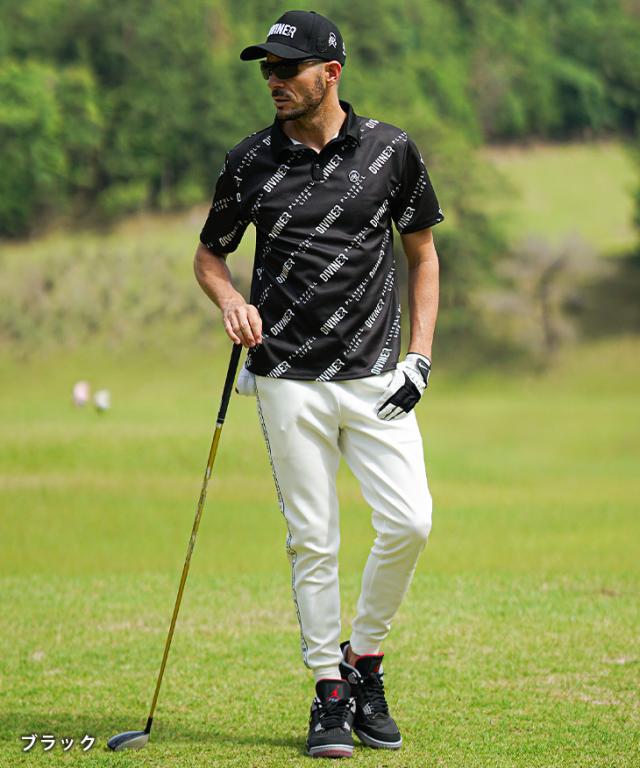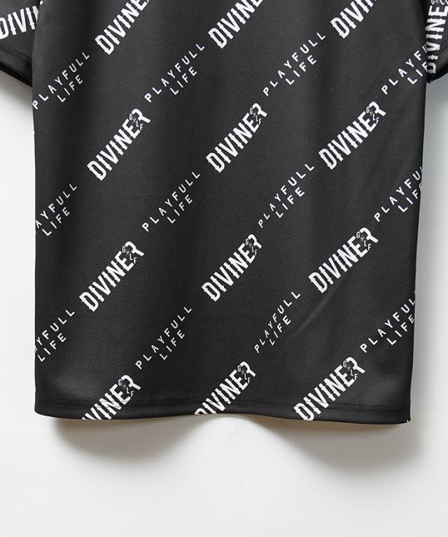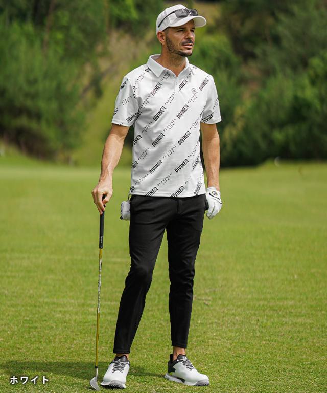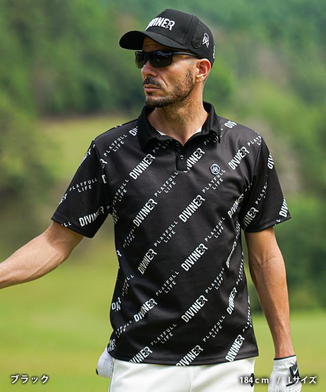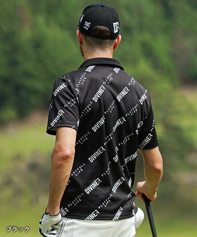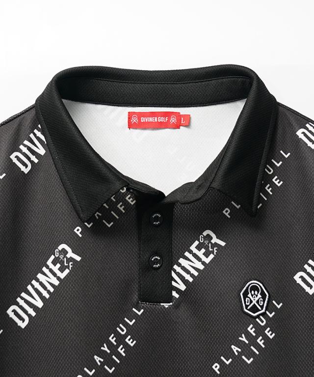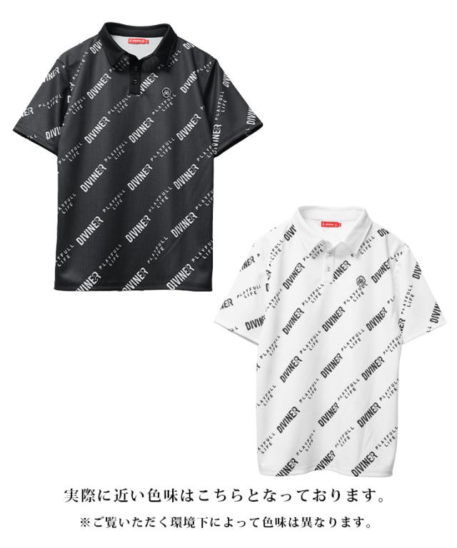 DIVINER GOLF(ディバイナーゴルフ)『総柄ロゴメッシュポロ』【総柄ロゴメッシュポロシャツ】■Design / デザイン“攻めすぎない柄で、印象に差をつける。”斜めに走るブランドロゴの総柄デザインが、単調になりがちなゴルフスタイルに程よいアクセントをプラス。ブラックとホワイトの2色展開で、柄の存在感を残しつつも上品に仕上げました。シルエットはやや細身。丈はジャストで、すっきりとした印象に。ベーシックな襟元に、さりげなく添えたオリジナルワッペンがワンポイントに映えます。さらっとした着心地で、プレー中も快適。控えめだけど、ちょっと攻めてる——そんな大人の余裕を感じさせる一枚です。