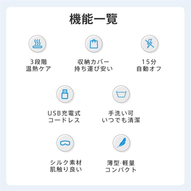 ★検索キーワード:目元エステ 目元 目もと 温熱 美容器 マスク USB充電式 男女兼用 自動オフ 3段階温熱 遮光 睡眠 休憩 グッズ 軽量 通気性 旅行 長さ調節 オールシーズン プレゼント 繰り返し使える タイム機能 アイウォーマー 睡眠用