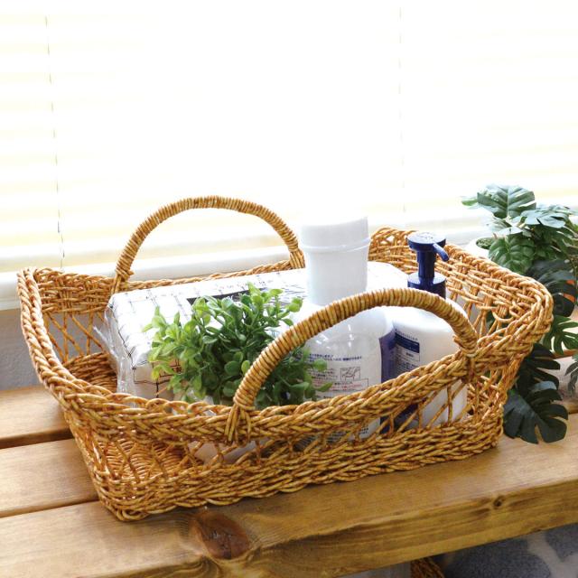 ハンドル付きで、よく使うアイテムをまとめて持ち運べます。お菓子や文房具などをまとめておけば、別の部屋でもすぐに使えて便利です。