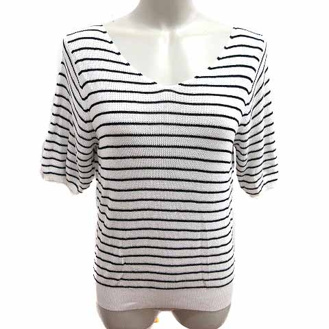 【中古】オペークドットクリップ OPAQUE.CLIP ニット カットソー Vネック ボーダー 五分袖 38 M 白 黒 /YK レディース