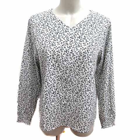 【中古】ユナイテッドアローズ UNITED ARROWS closet story ブラウス シャツ Vネック 花柄 長袖 白 黒 /YK レディース