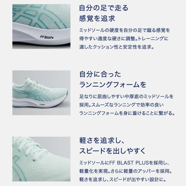 ミッドソール素材のFF BLAST PLUSは、軽量で優れたクッション性と安定性を発揮します。