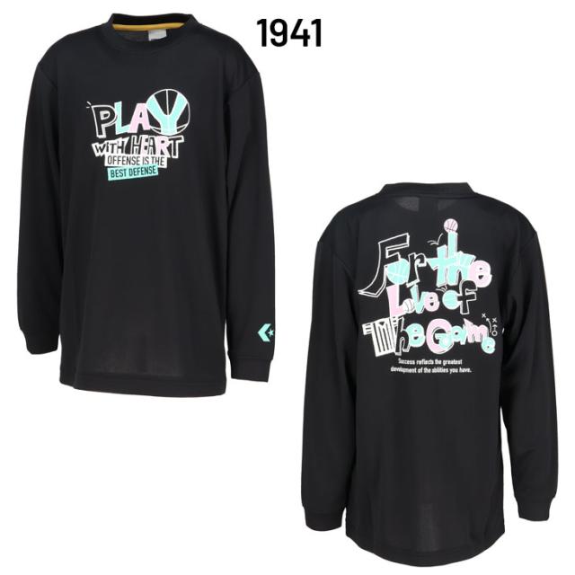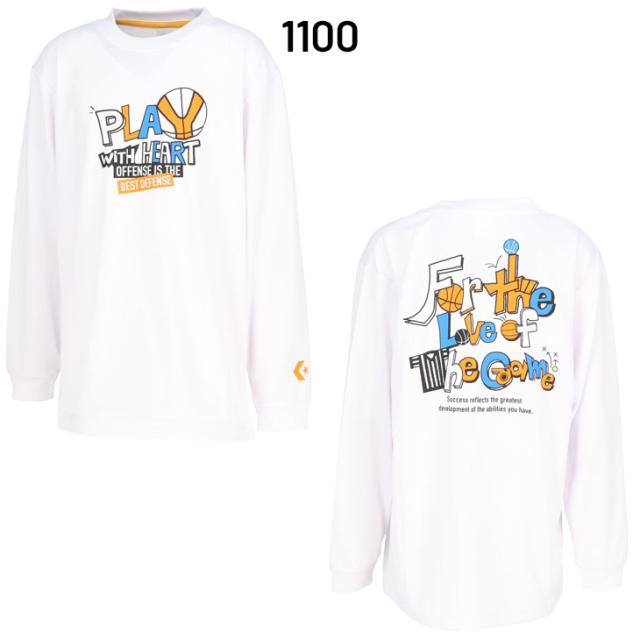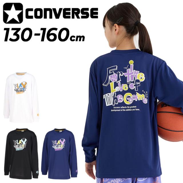コンバース キッズ ジュニア 長袖Tシャツ 130-160cm 子供服 CONVERSE プリントT バスケットボールウェア ロンT 吸汗速乾 子ども用 男の子 女の子 長そで トップス バスケシャツ スポーツウエア ミニバス スポーツTシャツ こども 練習着 ブランド アパレル/CB452359L