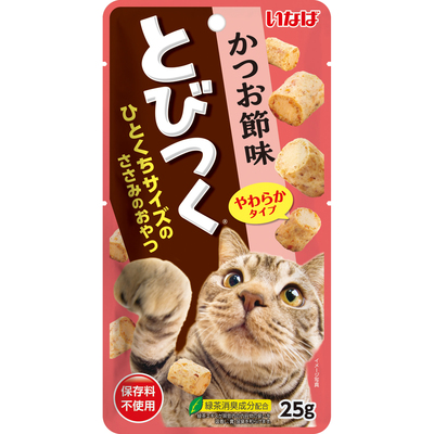 ひとくちサイズで、やわらかタイプのささみのおやつ。外側には「かつお節」を混ぜ込んだ2層構造。猫ちゃんと楽しくコミュニケーションをとりながら与えられます! 4901133632396