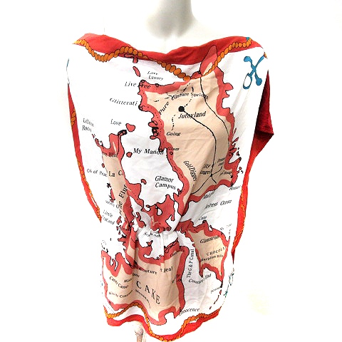 【中古】アクシーズファム axes femme カットソー Uネック 半袖 総柄 M 赤 レッド /RT レディース