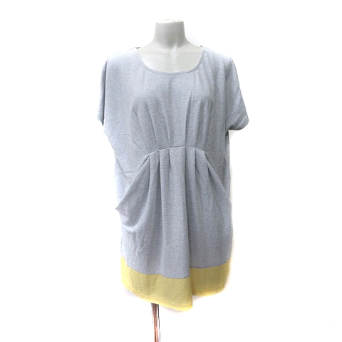 【中古】エル ELLE ワンピース ミニ 半袖 バイカラー グレー 黄色 イエロー /YI レディース
