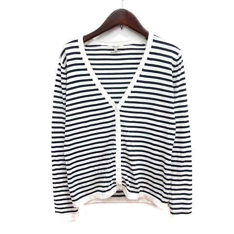 【中古】ボールジー BALLSEY トゥモローランド カーディガン ニット ボーダー 38 M 白 ホワイト 黒 ブラック