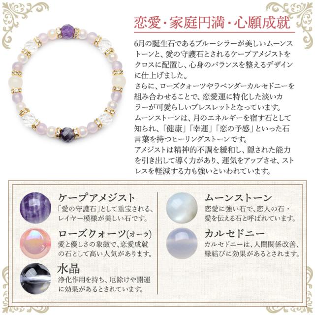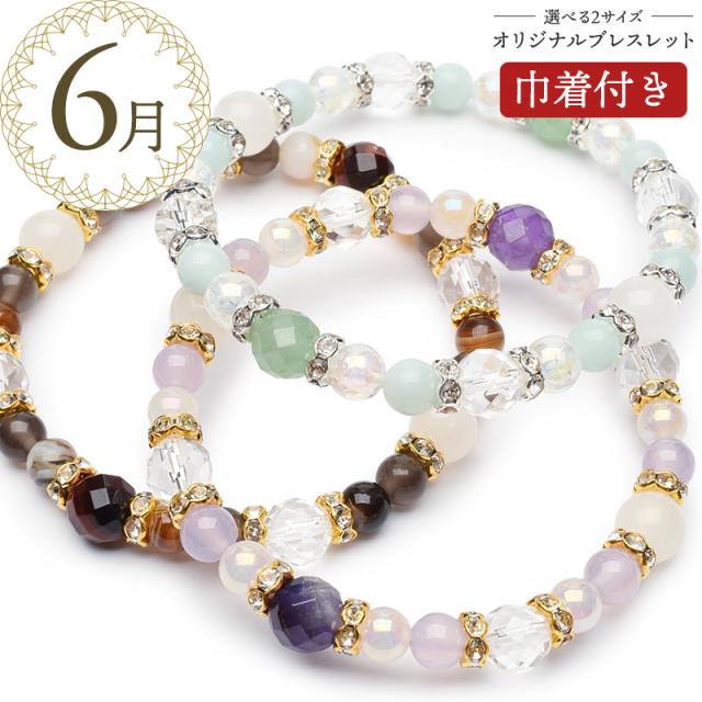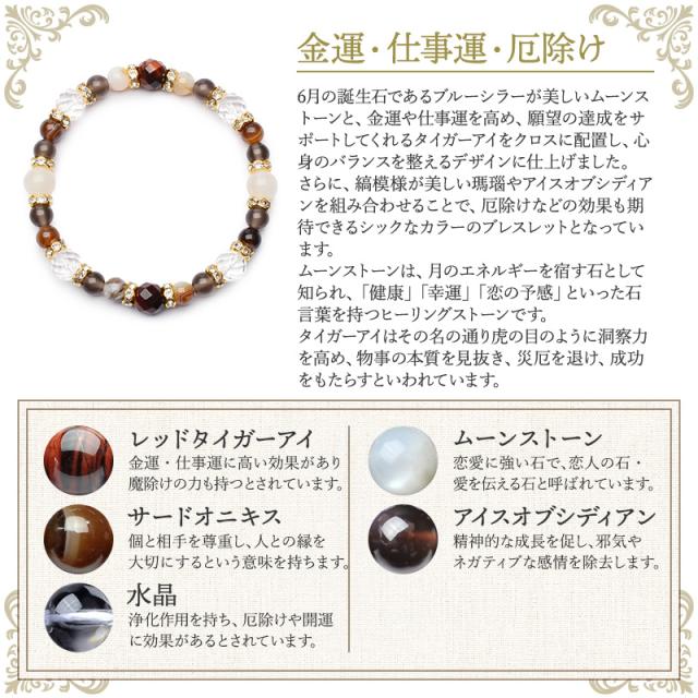 【6月デザイン】誕生石 天然石 パワーストーン ブレスレット 巾着付き 癒やし 恋愛 金運 ムーンストーン アベンチュリン アメジスト タイガーアイ 当店オリジナル メンズ レディース 男 女 アクセサリー プレゼント _MB2506