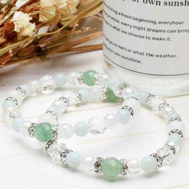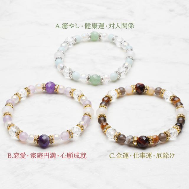 | 材質(±0.5mm) | 1-A 癒やし 64面カットグリーンアベンチュリン:8mm ムーンストーン:8mm アマゾナイト:6mm オーラクラック水晶:6mm 64面カット水晶:8mm ロンデル:6mm 1-B 恋愛 64面カットケープアメジスト:8mm ムーンストーン:8mm ローズクォーツレインボーオーラ:6mm ラベンダーカルセドニー:6mm 64面カット水晶:8mm ロンデル:6mm 1-C 金運 64面カットレッドタイガーアイ:8mm ムーンストーン:8mm サードオニキス:6mm アイスオブシディアン:6mm 64面カット水晶:8mm ロンデル:6mm |