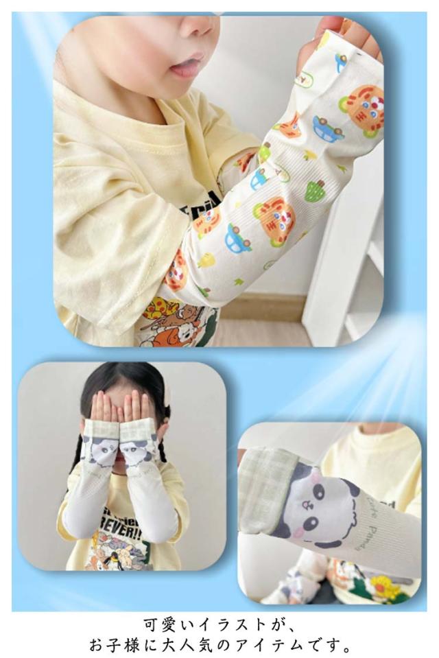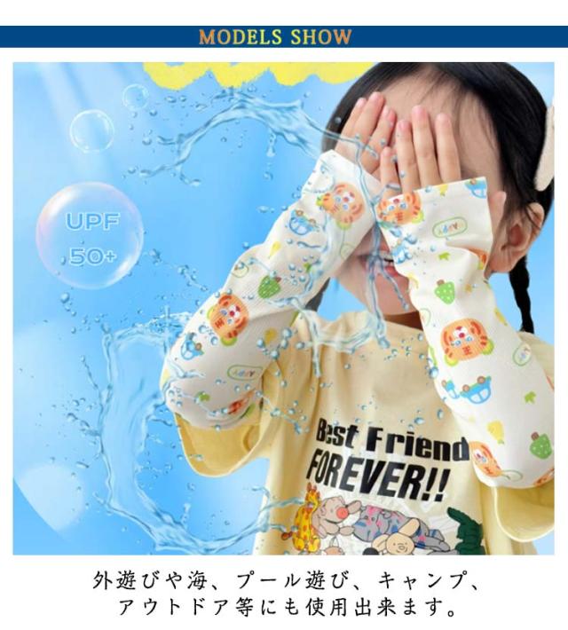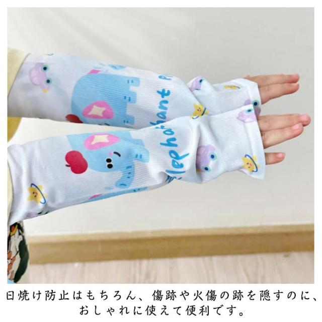 | 日焼け対策ができるキッズ用接触冷感アームカバーです。 可愛いイラストが、お子様に大人気のアイテムです。 日焼け防止はもちろん、傷跡や火傷の跡を隠すのに、おしゃれに使えて便利です。 虫刺され防止にも効果的! 水着のような素材で伸縮性がありよく伸びます。 外遊びや海、プール遊び、キャンプ、アウトドア等にも使用出来ます。 | |