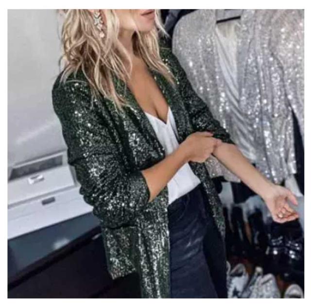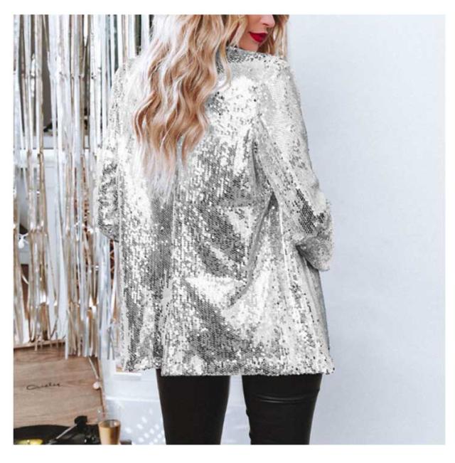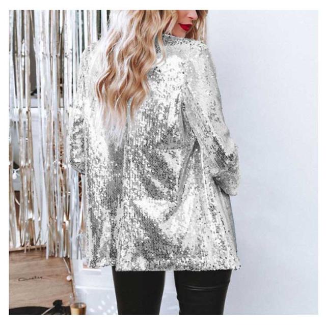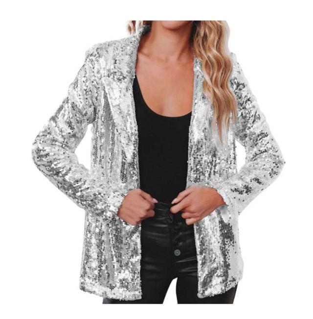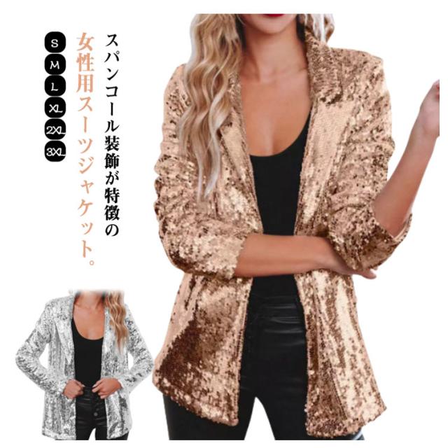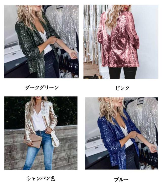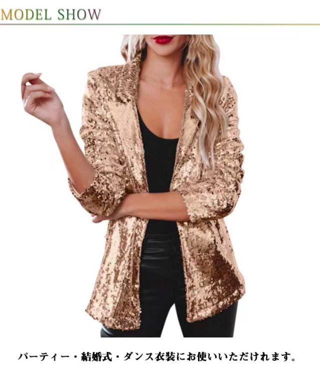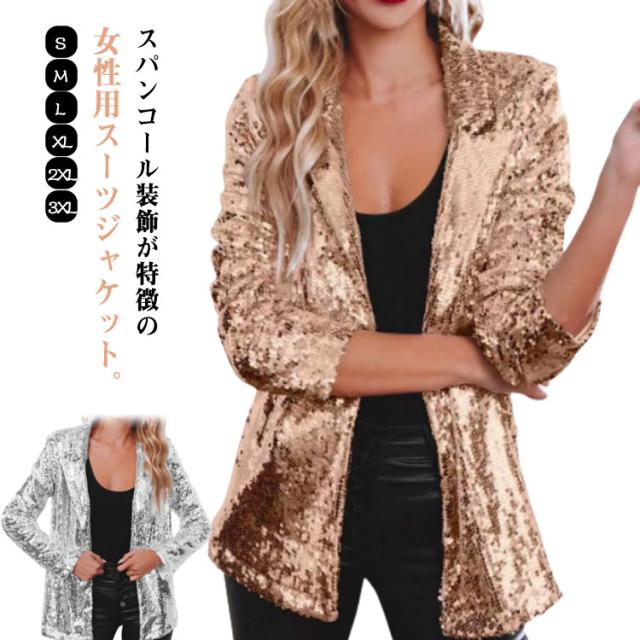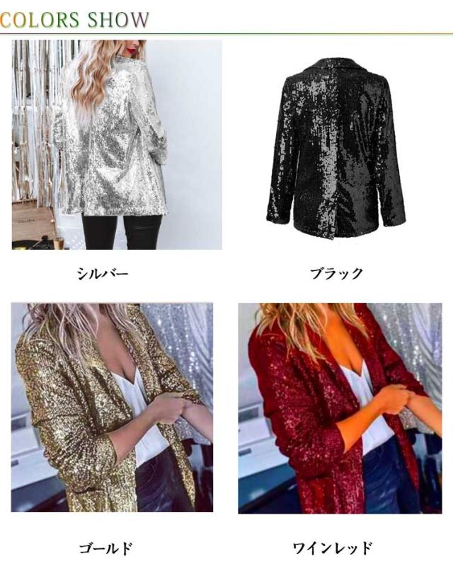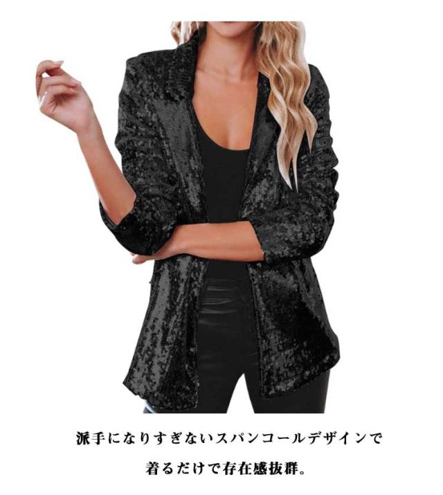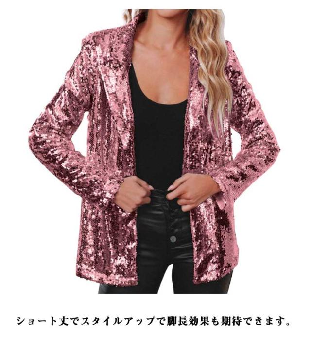 レディース ジャケット ステージ衣装 スパンコール きらきら アウター ミドル丈 テーラードジャケット 長袖 トップス 舞台ステージ服 スーツジャケット クリスマス カーディガン 新年会 学園祭 撮影衣装 演出服 イベントジャケット