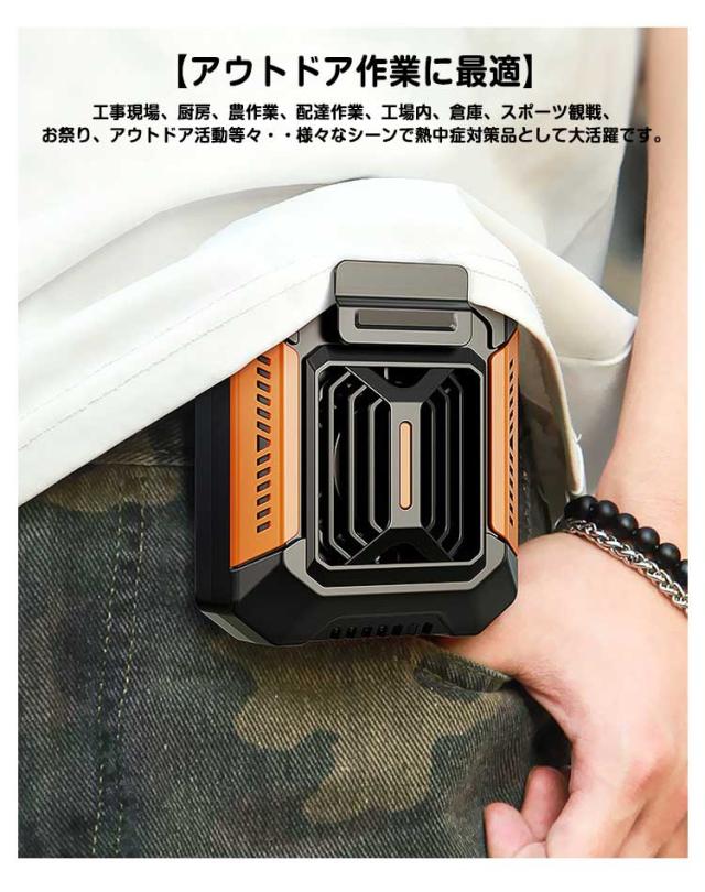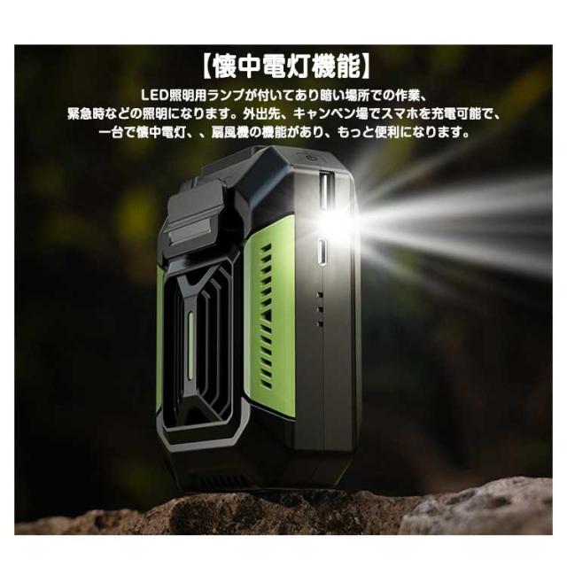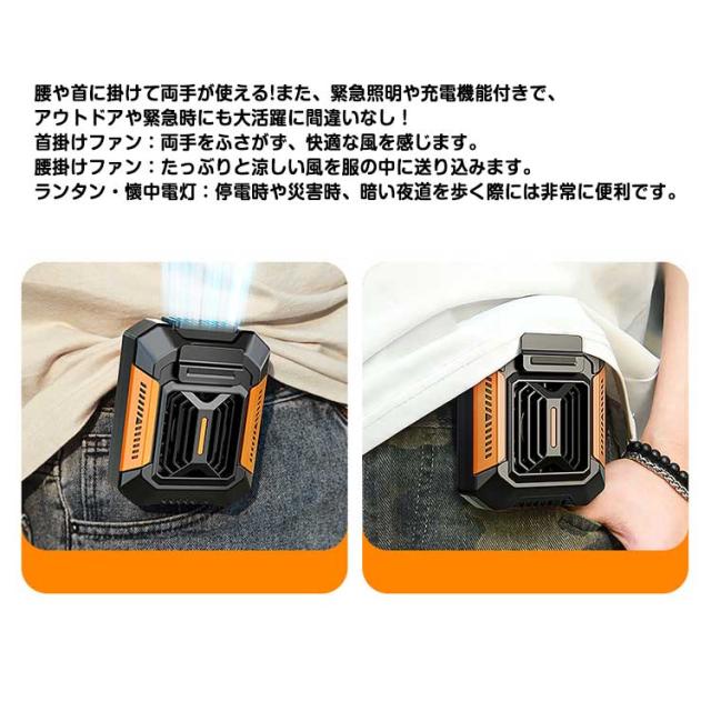 | 【4WAY!多機能ベルトファン】腰掛け、首掛け、手持ち、卓上一台4役使いシーンによって使い分けられます。 腰や首に掛けて両手が使える!また、緊急照明や充電機能付きで、アウトドアや緊急時にも大活躍に間違いなし!首掛けファン:両手をふさがず、快適な風を感じます。腰掛けファン:たっぶりと涼しい風を服の中に送り込みます。ランタン・懷中電灯:停電時や災害時、暗い夜道を歩く際には非常に便利です。 【3段階風量調整】自然に近い弱風から強風まで3段階の風量調節が可能で、気温に合わせて自由に調節できます。 【懐中電灯機能】LED照明用ランプが付いてあり暗い場所での作業、緊急時などの照明になります。外出先、キャンペン場でスマホを充電可能で、一台で懐中電灯、、扇風機の機能があり、もっと便利になります。 【取り付け簡単】ベルトホルダー部分はフックタイプなので、厚めのベルトではやや装着しにくさがあります。腰に掛け式で、ウエストに挟むのが可能、いつでもどこでも涼しくなります。 【アウトドア作業に最適】工事現場、厨房、農作業、配達作業、工場内、倉庫、スポーツ観戦、お祭り、アウトドア活動等々・・様々なシーンで熱中症対策品として大活躍です。 | |